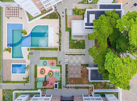 Praça das boas vindas, espaço mulher, academia com terraço, piscina (adulto e infantil)