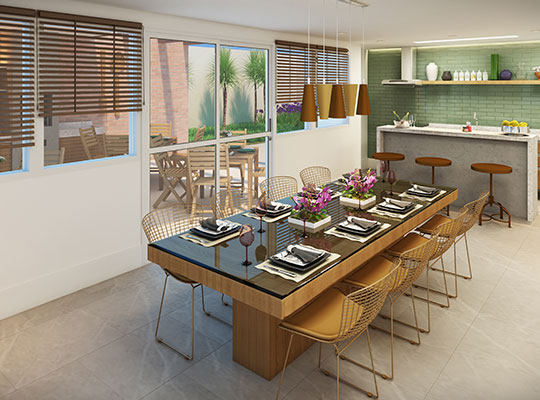 Área de lazer: Piscina Adulto e Infantil - Academia - Lavanderia Coletiva - Salão Gourmet - Salão de Festas - Sala de reunião - Churrasqueira - Playground - Brinquedoteca - Quadra
